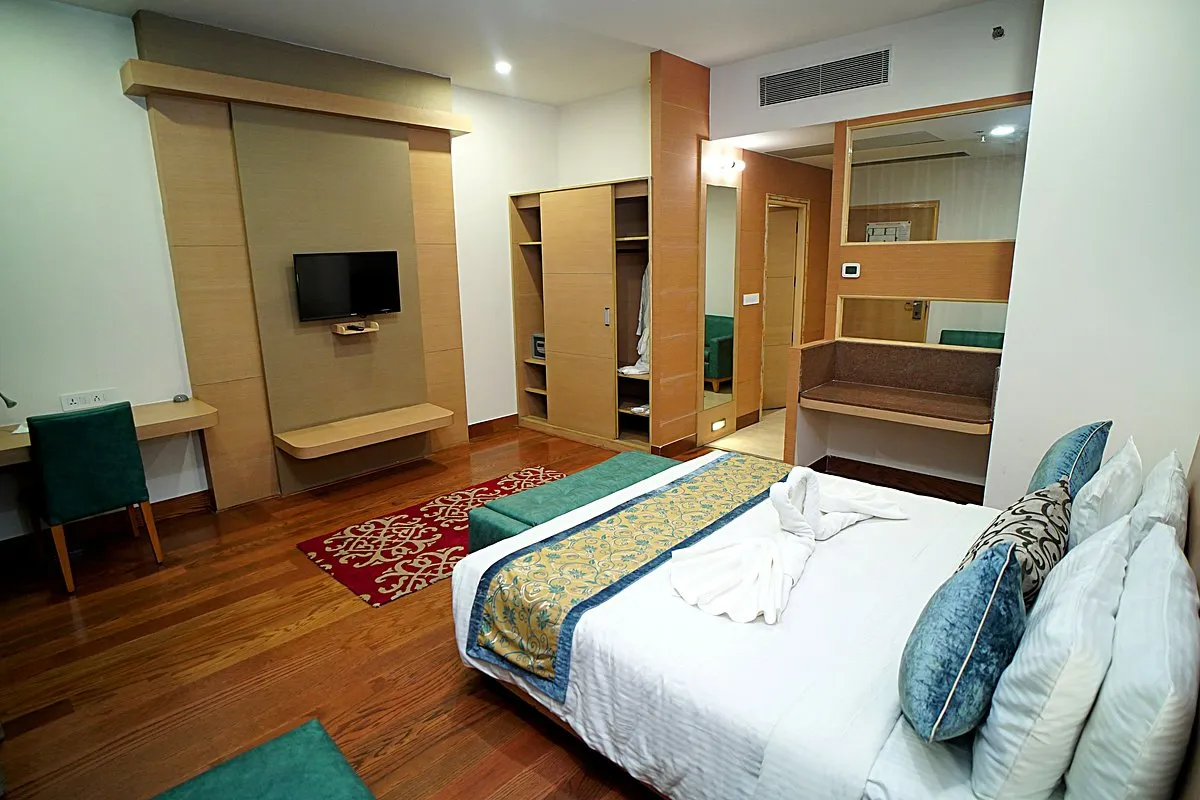 هتل اسکاک لاید گرند دارای 151 اتاق مجهز و مدرن است که طراحی آنها بهگونهای است که انواع سلیقهها و نیازهای مسافران را پوشش میدهد. اتاقها با رنگهای ملایم و دکوراسیون شیک تزئین شدهاند و دارای امکاناتی همچون تلویزیون صفحهتخت، اینترنت رایگان، تهویه مطبوع، میز کار، صندوق امانات، و حمامهای لوکس با دوش و لوازم بهداشتی کامل هستند. برخی از اتاقها چشماندازی زیبا از شهر دهلی دارند که اقامت در آنها را به تجربهای دلپذیر تبدیل میکند.