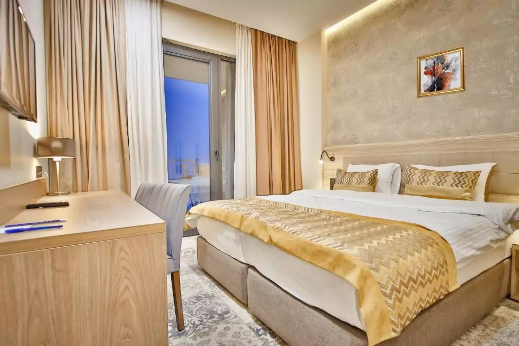 هتل آمری پلازا تفلیس یکی از هتلهای ۴ ستاره محبوب در شهر تفلیس، گرجستان است که اقامتی راحت و با امکانات کامل را در منطقه ی سابرتالو (Saburtalo) برای مهمانان فراهم میکند. این هتل در ساختمانی با ارتفاع مناسب قرار دارد و بسیاری از اتاق ها منظره های زیبایی از شهر تفلیس را ارائه میدهند، بهگونه ای که هم برای سفر های گردشگری و هم برای سفر های کاری گزینه ای مناسب و خوش دسترس به شمار میرود. موقعیت مکانی هتل آمری پلازا در خیابان مراب کوستاو (Merab Kostava Street) واقع شده و تنها چند دقیقه پیاده روی تا خیابان پِکینی (Pekini Avenue)، یکی از مناطق پُر رفت و آمد با فروشگاه ها، کافه ها، رستوران ها و بوتیک های برند دارد. از این هتل با خودرو یا تاکسی میتوان به راحتی به جاذبه های اصلی تفلیس مانند خیابان روستاولی، میدان آزادی، حمام های سولفوری و باغ وحش تفلیس دسترسی یافت و فرودگاه بین المللی تفلیس نیز حدود ۱۷ تا ۲۰ کیلومتر فاصله دارد که با تاکسی در کمتر از نیم ساعت قابل دسترسی است. این هتل در مجموع دارای ۵۵ اتاق و سوئیت است که با طراحی مدرن و دکوراسیونی روشن و دنج تجهیز شده اند. اتاق های آمری پلازا شامل انواعی مانند اتاق های استاندارد، دلوکس، اتاق اقتصادی، اتاق خانوادگی و آپارتمان های چند خوابه میشود، به طوری که تقریباً همه ی نیاز های مهمانان از اقامت های کوتاه مدت تا اقامت های طولانی تر را پوشش میدهد. همه ی اتاق ها مجهز به امکاناتی پایه کامل هستند و همچنین بسیاری از آن ها دارای بالکن با چشم اندازی به شهر می باشند. هتل آمری پلازا تفلیس امکانات رفاهی متنوعی ارائه می دهد تا اقامت مهمانان فراتر از یک اتاق ساده باشد. رستوران هتل در طبقه ی دوم با صبحانه بوفه ای متنوع آغاز می شود و در طول روز غذا های بین المللی و ترکی در منوی آن قابل سفارش است. بخش بار و لابی نیز مکانی مناسب برای صرف نوشیدنی، قهوه، میان وعده یا دورهمی های عصرانه فراهم کرده است، و برای مهمانانی که فعالیت های کاری انجام می دهند، می توانند از مرکز بیزنس و سالن نشست ها نیز بهره مند شوند.