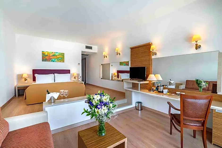 اتاق‌های هتل گرند پارک با طراحی چشم‌نواز و دکوراسیونی هماهنگ با سبک مدرن، تجربه‌ای متفاوت از اقامت را برای مهمانان رقم می‌زنند. هر اتاق با ظرافت خاصی چیدمان شده و از نور طبیعی مناسبی بهره می‌برد. پنجره‌های بزرگ با چشم‌اندازهایی از دریای آبی یا فضای سبز اطراف، حس آرامش و راحتی را برای مسافران به ارمغان می‌آورند. طراحی داخلی اتاق‌ها به‌گونه‌ای است که هر مهمان با ورود به آن احساس آرامش و امنیت می‌کند. مبلمان شیک، تخت‌خواب‌های راحت و فضایی منظم، از جمله ویژگی‌هایی هستند که باعث محبوبیت اتاق‌های این هتل شده‌اند.