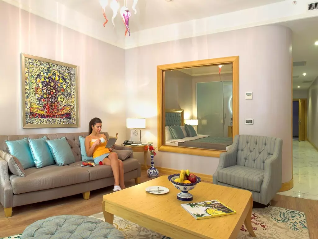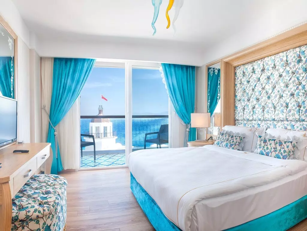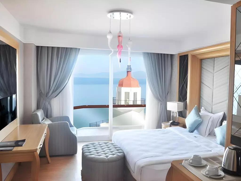 اتاقهای این هتل با دقت و سلیقهی خاصی طراحی شدهاند تا حسی از آرامش، زیبایی و راحتی را به مهمانان القا کنند. فضای داخلی اتاقها با رنگهای گرم و ملایم، نورپردازی حرفهای و مبلمان شیک تزئین شده و بهگونهای است که احساس اقامت در یک فضای مدرن و در عین حال صمیمی را منتقل میکند. نمای برخی از اتاقها به سوی دریای آرام اژه باز میشود و برخی دیگر چشمانداز زیبای باغهای سرسبز اطراف را ارائه میدهند. تمامی اتاقها از نظر امکانات رفاهی کامل هستند و اقامتی آسوده و بیدغدغه را برای مهمانان فراهم میآورند.