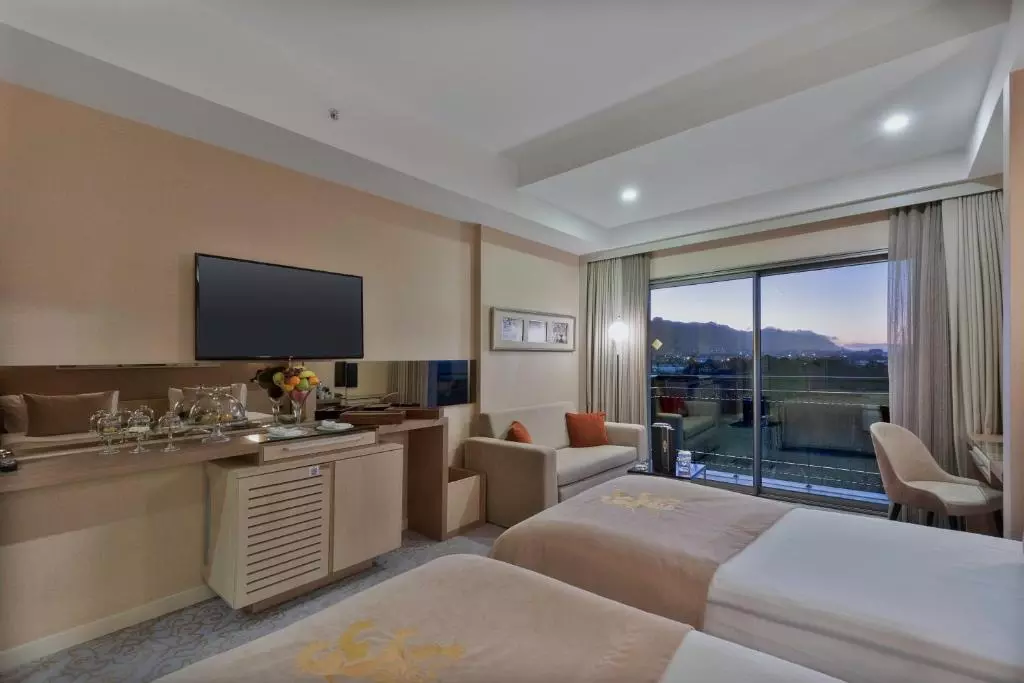 هتل کراتوس پرمیوم یکی از مجللترین و مشهورترین هتلهای پنجستاره در شهر گیرنه در شمال قبرس است که با امکاناتی لوکس، خدماتی سطحبالا و محیطی بینظیر، تجربهای فراموشنشدنی از اقامت را برای مهمانان خود فراهم میکند. این هتل در موقعیتی عالی در کنار ساحل دریای مدیترانه قرار گرفته و با چشماندازی خیرهکننده از دریا و طبیعت اطراف، یکی از بهترین گزینهها برای مسافران علاقهمند به اقامت در فضایی آرام، لوکس و در عین حال پر از امکانات تفریحی به شمار میرود. کراتوس پرمیوم با طراحی باشکوه و معماری مدرن خود، ترکیبی از راحتی و ظرافت را به نمایش گذاشته و در میان بهترین هتلهای قبرس شمالی جایگاه ویژهای دارد. این هتل دارای صدها اتاق و سوئیت با طراحی منحصربهفرد است که تمامی آنها بهصورت کامل مجهز به امکانات رفاهی و تفریحی هستند. هر اتاق با دکوراسیونی مدرن، رنگهای آرامشبخش و چشماندازی روبهدریا یا باغ، محیطی دلپذیر و لوکس را برای استراحت فراهم میکند. امکانات داخل اتاقها شامل سیستم تهویه مطبوع پیشرفته، تلویزیون صفحهتخت با کانالهای بینالمللی، مینیبار، صندوق امانات، میزکار، لوازم بهداشتی لوکس، اینترنت بیسیم پرسرعت و خدمات رومسرویس شبانهروزی است.هتل کراتوس پرمیوم مجموعهای کامل از امکانات تفریحی و رفاهی را در خود جای داده است. ساحل اختصاصی با شنهای نرم و آبی زلال، استخر بزرگ روباز با طراحی منحصربهفرد، استخر سرپوشیده، مرکز اسپا و ماساژ، سالن بدنسازی مجهز، سونا، جکوزی و حمام ترکی تنها بخشی از امکاناتی هستند که مهمانان میتوانند از آنها بهرهمند شوند. برای علاقهمندان به ورزشهای آبی، امکانات ویژهای در ساحل هتل فراهم شده و همچنین زمینهای تنیس و باشگاههای سرگرمی نیز در دسترس هستند. خانوادهها میتوانند از امکانات ویژه کودکان شامل زمین بازی، باشگاه کودک و خدمات نگهداری کودک بهرهمند شوند تا اقامتی بدون دغدغه را تجربه کنند. در زمینه خوراک و نوشیدنی، هتل کراتوس پرمیوم یکی از متنوعترین مجموعهها را ارائه میدهد. رستورانهای متعدد این هتل شامل رستوران اصلی با بوفهای مجلل از غذاهای بینالمللی، رستورانهای آلاکارته با تخصص در غذاهای دریایی، ترکی و مدیترانهای، و همچنین کافیشاپها و بارهای مختلف در نقاط مختلف مجموعه هستند که محیطهایی دلپذیر برای صرف وعدههای غذایی یا استراحت در کنار نوشیدنیهای متنوع ایجاد میکنند.از دیگر ویژگیهای برجسته هتل کراتوس پرمیوم، مرکز همایشها و سالنهای مجهز آن است که برای برگزاری جلسات کاری، کنفرانسها و مراسمهای ویژه طراحی شدهاند. خدمات اختصاصی برای مهمانان تجاری شامل اینترنت پرسرعت، تجهیزات صوتی و تصویری حرفهای و تیم پشتیبانی فنی نیز فراهم است. علاوه بر این، هتل دارای مرکز خرید کوچک، سالن زیبایی، خدمات کرایه خودرو و ترانسفر فرودگاهی است تا تمام نیازهای مهمانان را به بهترین شکل ممکن پاسخ دهد. فضای بیرونی هتل نیز با باغهای سرسبز، مسیرهای پیادهروی و مناظر چشمنواز، محیطی ایدهآل برای استراحت و لذت بردن از هوای مدیترانهای فراهم میکند. موقعیت مکانی فوقالعاده هتل در نزدیکی مرکز شهر گیرنه، امکان دسترسی آسان به جاذبههای گردشگری از جمله قلعه گیرنه، بندر تاریخی و صومعه بلاپایس را فراهم میسازد.در مجموع هتل کراتوس پرمیوم نمادی از شکوه و مهماننوازی مدیترانهای است که با تلفیق لوکسترین امکانات، خدمات حرفهای، محیطی آرام و موقعیتی بینظیر در کنار ساحل، انتخابی ایدهآل برای مسافران لوکسپسند محسوب میشود. این هتل با ارائه تجربهای منحصربهفرد از اقامت، ترکیبی از رفاه، تفریح و آرامش را در فضایی باشکوه فراهم کرده و اقامتی فراتر از انتظار را برای مهمانان خود رقم میزند تا هر لحظه حضور در آن، خاطرهای ماندگار از سفر به قبرس شمالی باشد.