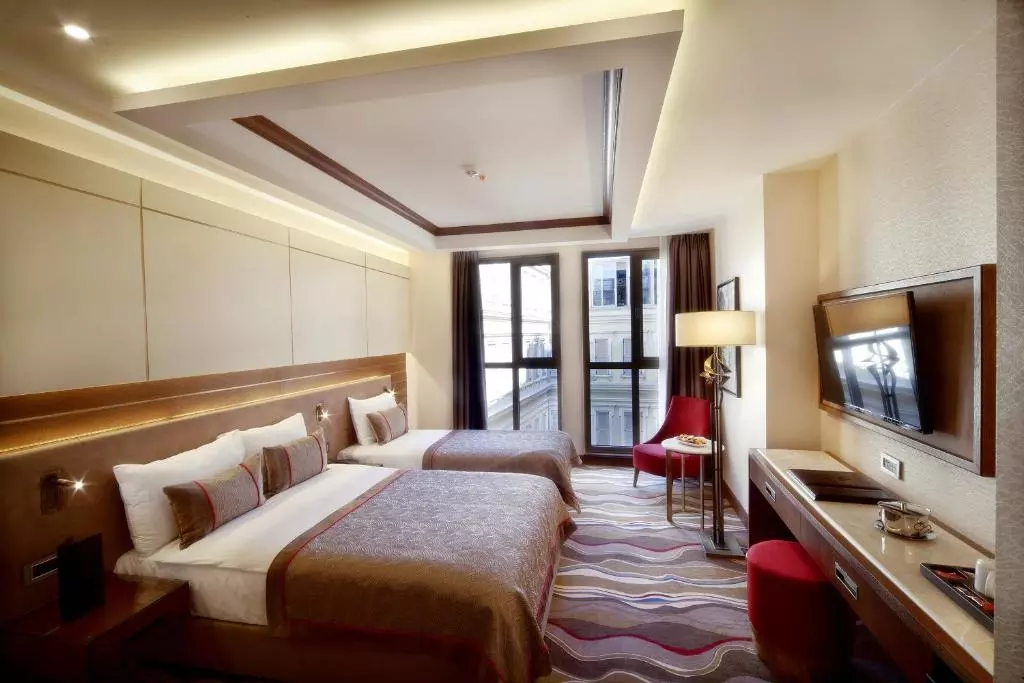 هتل گرند دِ پرا استانبول یکی از هتلهای چهارستارهی برجسته در منطقهی تاریخی بیاوغلو است. این هتل با طراحی کلاسیک و امکانات مدرن، تجربهای ترکیبی از راحتی، رفاه و دسترسی آسان به جاذبههای مهم شهر را برای میهمانان فراهم میکند. موقعیت مکانی این هتل در نزدیکی میدان تکسیم و خیابان استقلال، آن را به گزینهای مناسب برای گردشگران و مسافران تجاری تبدیل کرده است.یکی از مزایای مهم هتل گرند دِ پرا، دسترسی مناسب آن به فرودگاههای اصلی استانبول است. این هتل تنها حدود ۱۸ کیلومتر از فرودگاه آتاتورک (IST) فاصله دارد که با تاکسی حدود ۲۱ دقیقه زمان میبرد.وهمچنین فاصله تا فرودگاه صبیحه گوکچن (SAW) تقریباً ۴۳ کیلومتر است و مسیر با تاکسی حدود ۳۲ دقیقه طول میکشد. هتل گرند دِ پرا با معماری کلاسیک و جزئیات مدرن، فضایی لوکس و دلنشین برای اقامت فراهم کرده است. اتاقها با رنگهای گرم و مبلمان چوبی با کیفیت بالا طراحی شدهاند و حس راحتی و آرامش را منتقل میکنند. تمامی اتاقها مجهز به سیستم تهویه مطبوع، تلویزیون صفحهتخت، اینترنت بیسیم رایگان، مینیبار و حمام اختصاصی با لوازم بهداشتی باکیفیت هستند. برخی اتاقها چشماندازی به خیابان استقلال یا بافت تاریخی بیاوغلو دارند و تجربهای بینظیر از مشاهدهی شهر در اختیار مهمانان قرار می دهند. هتل گرند دِ پرا استانبول خدمات متنوعی ارائه میدهد تا اقامت مهمانان به یادماندنی باشد. مرکز اسپا شامل حمام ترکی، سونا، جکوزی و اتاق ماساژ است که فرصتی برای استراحت فراهم میکند. سالن بدنسازی مجهز نیز برای استفادهی مهمانان آماده است. رستوران هتل با ارائه غذاهای بینالمللی و ترکی، محیطی آرام و کلاسیک برای صرف وعدههای غذایی فراهم کرده و صبحانهی روزانه بهصورت بوفه با مجموعهای از خوراکیهای تازه و متنوع سرو میشود.یکی از نقاط قوت این هتل، رفتار حرفهای و مودبانه کارکنان آن است. تیم پذیرش وخدماترسانی چندزبانه و آموزشدیده هستند و تمامی تلاش خود را میکنند تا اقامتی راحت و بدون دغدغه برای مهمانان فراهم شود. خدمات نظافت روزانه، مدیریت چمدان و پاسخگویی سریع به درخواستها، سطح بالای مهماننوازی را تضمین میکند.اقامت در هتل گرند دِ پرا استانبول ترکیبی از راحتی، موقعیت مرکزی و دسترسی آسان به مراکز فرهنگی و تاریخی شهر است. نزدیکی به خیابان استقلال، میدان تکسیم و امکانات حملونقل عمومی باعث میشود مهمانان بتوانند به راحتی به جاذبههای شهر دسترسی داشته باشند. این هتل با خدمات کامل، موقعیت مکانی عالی و قیمت مناسب برای هتلهای چهارستاره، انتخابی ایدهآل برای گردشگران و مسافران تجاری است که خواهان اقامتی لوکس و راحت در مرکز استانبول هستند.