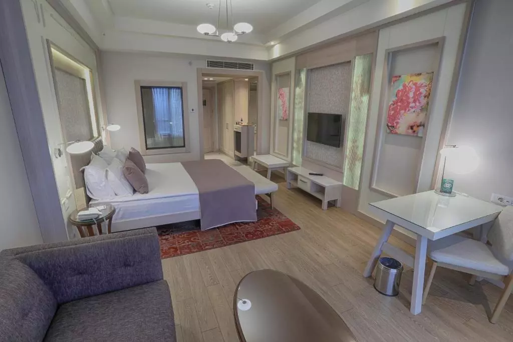 واحدهای اقامتی هتل منظره‌ای از شهر ارائه می‌دهند و دارای حمام اختصاصی با سرویس بهداشتی فرنگی، بیده، دوش، لوازم بهداشتی رایگان، حوله، دمپایی و سشوار هستند. اتاق‌ها فضای نشیمن مجزا دارند و به امکاناتی مانند تلویزیون با کانال‌های ماهواره‌ای، کتری برقی، مینی‌بار، تلفن و صندوق امانات مجهز شده‌اند. همچنین سیستم تهویه مطبوع، خدمات 24ساعته و اینترنت رایگان نیز در اتاق‌ها وجود دارد. هتل دارای رستوران داخلی است که انواع غذاهای ترکی را برای مهمانان ارائه می‌ دهد.